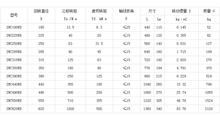 SWC-WD型十字轴式万向联轴器适用范围